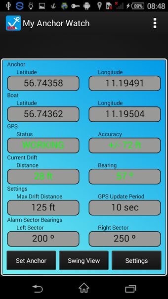 我的锚位监控将在您的锚位不稳定时提醒您。它还会通知您,如果您的船只移动过快或海面波涛汹涌。如果发生这种情况,您应该停止航行并返回港口。